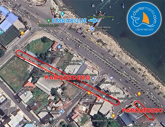 * El embarque se realiza desde el muelle marginal de la Autoridad Portuaria, a la izquierda de la entrada a Manta Yacht Club.